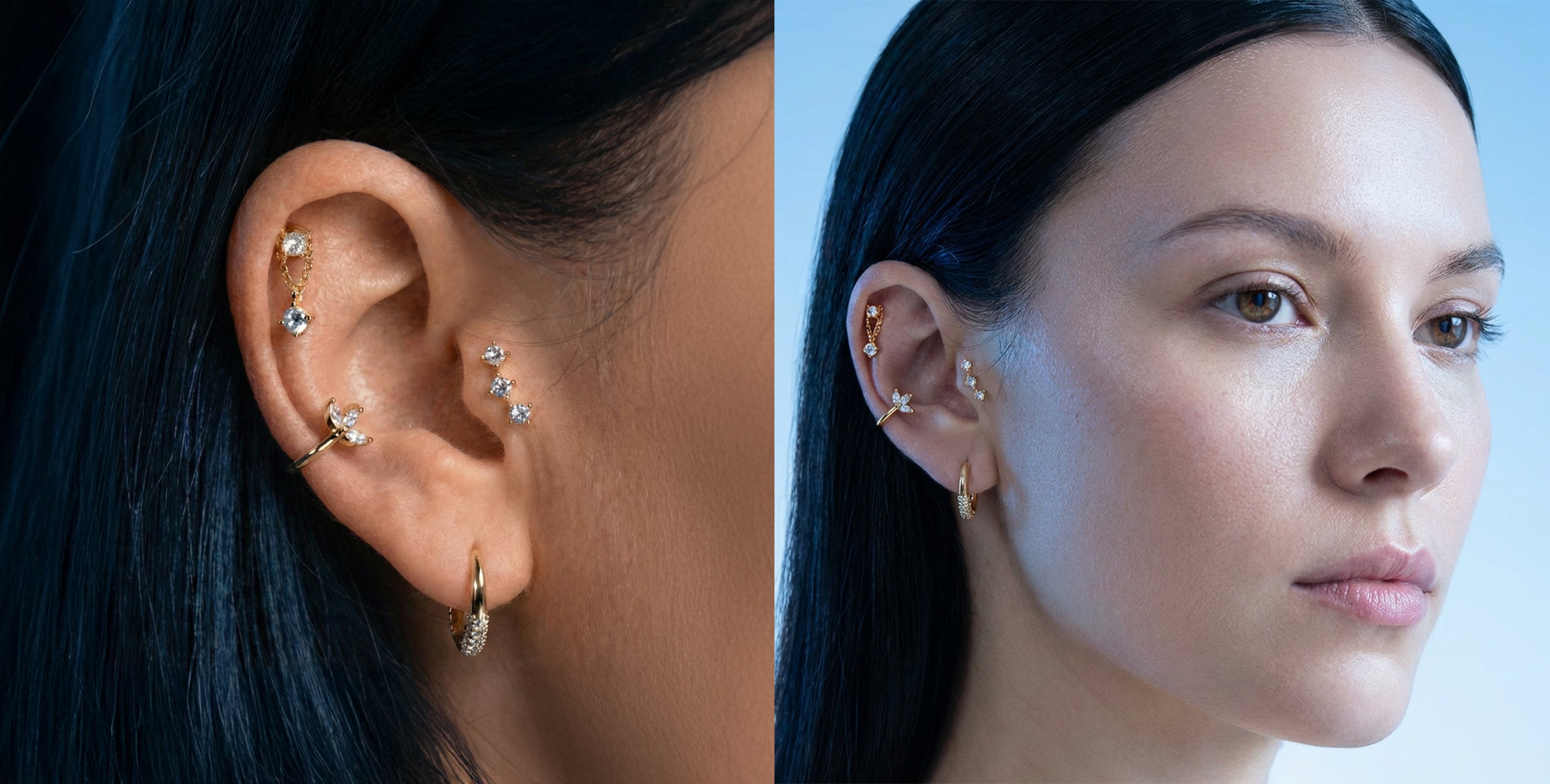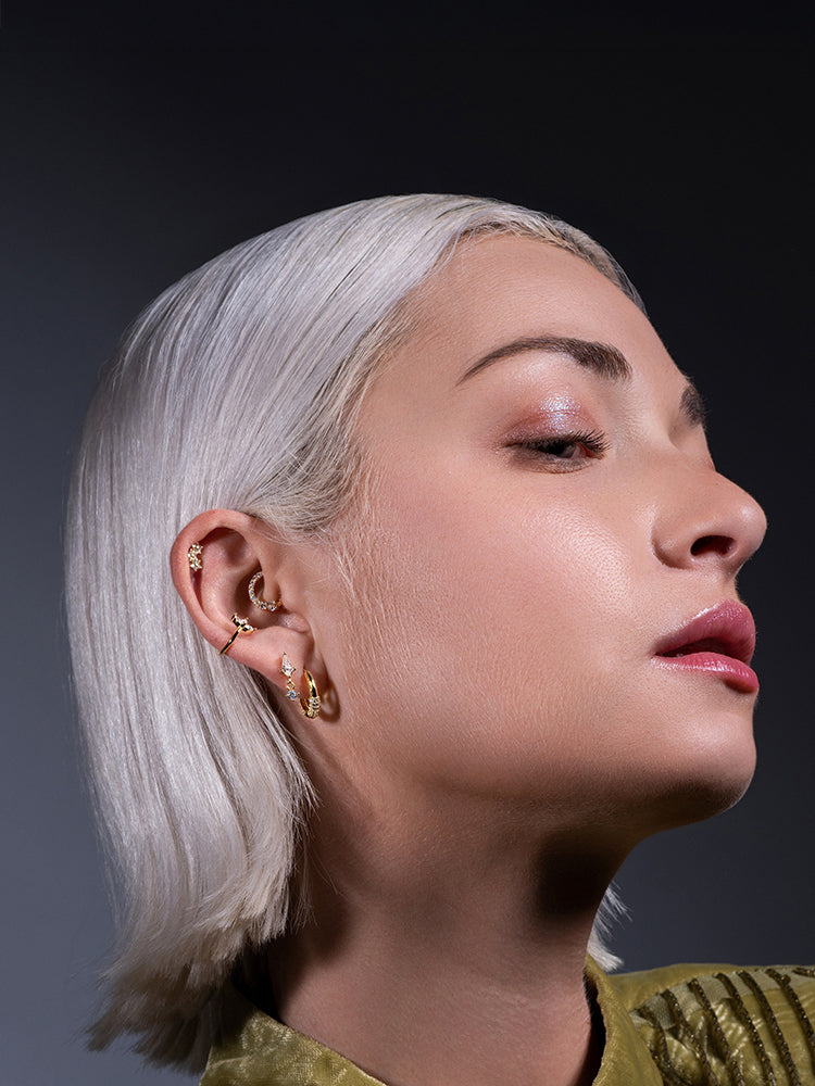 Faites-vous plaisir en combinant nos piercings et boucles d'oreilles pour un look unique et personnalisé ! Vous pouvez opter pour des compositions symétriques pour un effet harmonieux ou jouer avec l'asymétrie pour un style plus audacieux et moderne.